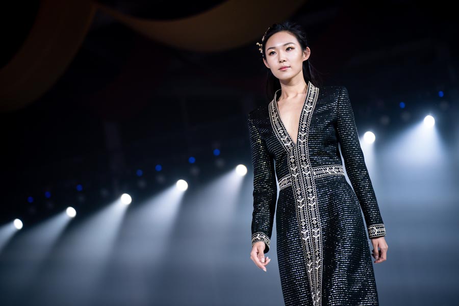 Designers from Beijing-based Eve Group used patterns from costumes of the Li and Miao ethic groups, dyeing techniques of Lijin, and embroidering skills from Miao people to create a modern style.