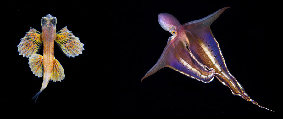 The photos of sea creatures that he has taken over the years. [Photo provided to China Daily] |