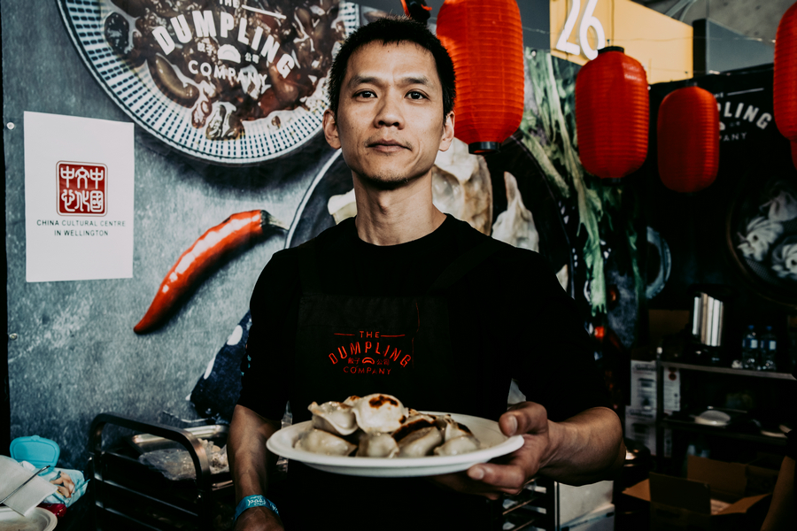 The China Cultural Center in Wellington joins the Wellington Food Show and provides Chinese fried dumplings to the visitors with The Dumpling Company, Oct 30-Nov 1, 2020. [Photo by Zhang Jianyong/provided to Chinaculture.org]