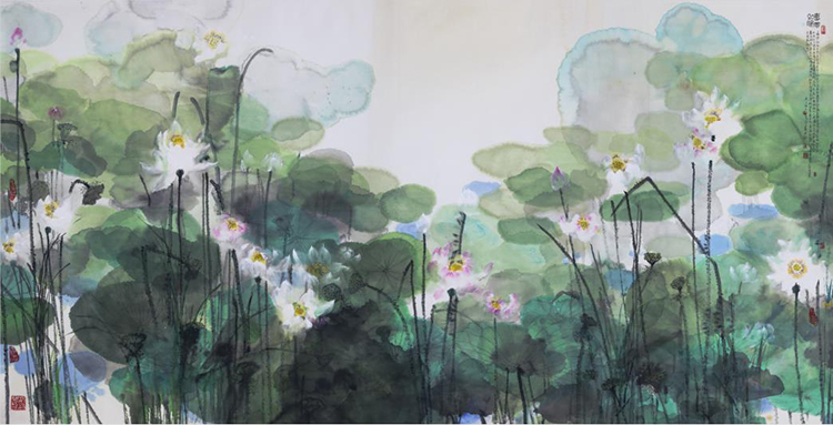 An ink painting by Ma Shulin on show. [Photo provided to China Daily]