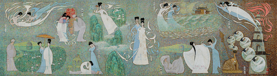 The Legend of White Snake, a significant piece in contemporary China’s mural art history is recreated into a wall mosaic featured at the Changde Mural Wall in Central China’s Hunan province. The mural was originally created by muralists Li Huaji and Quan Zhenghuan for the Beijing Capital International Airport in 1979. [Photo provided to chinadaily.com.cn] |