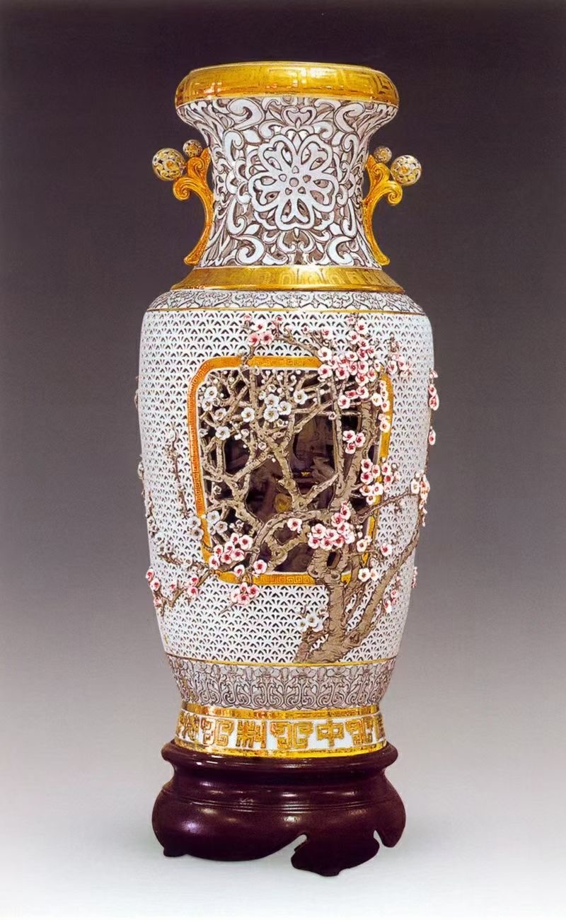 A three-layer porcelain vase. [Provided to chinadaily.com.cn]