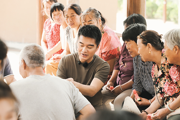 Actor Xu Yajun talks to people in Taibei village, Jincheng city, Shanxi province. [Photo provided to China Daily] |