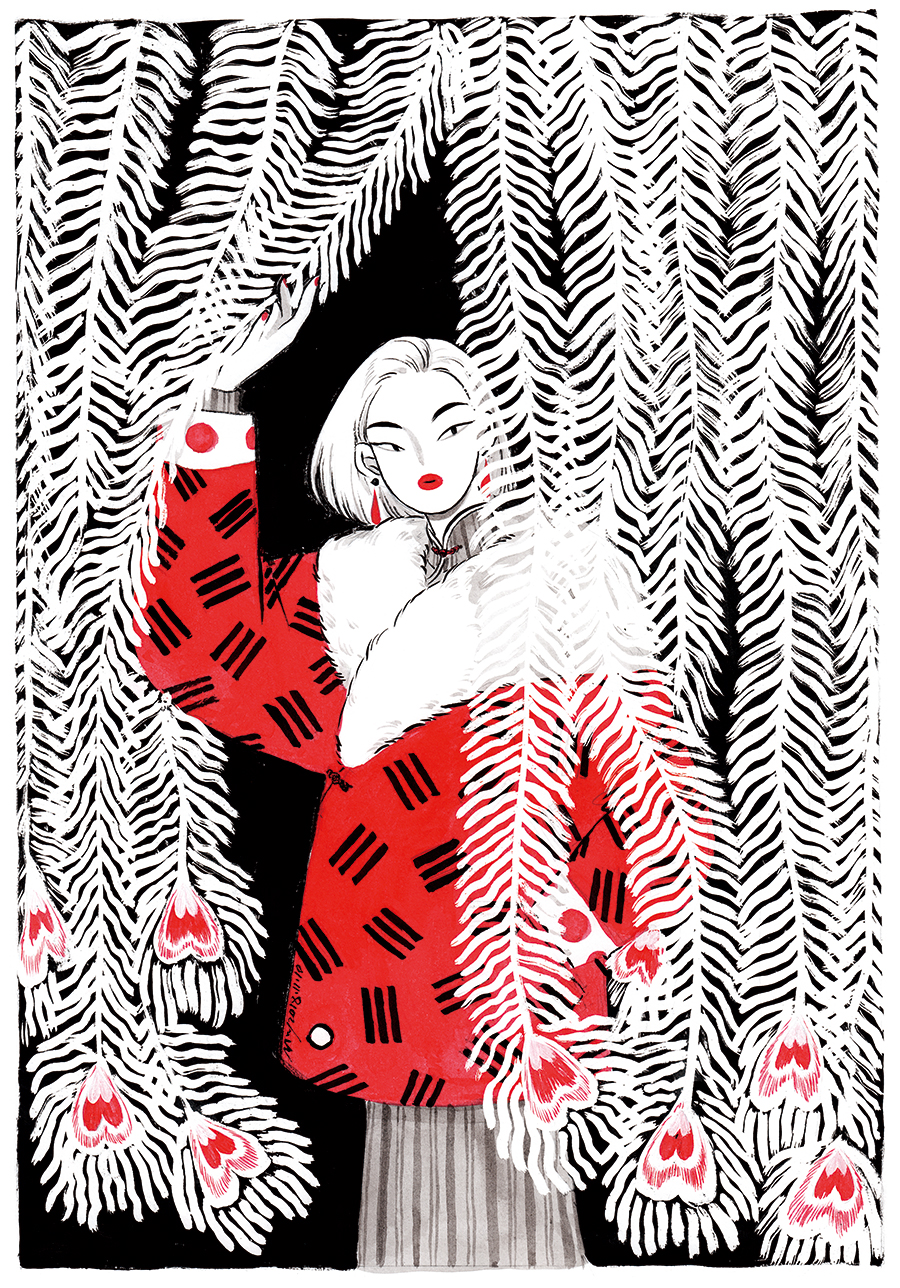 One piece from Chen's Red and Black series which was showcased at a landmark department store in Milan, Italy, in January. [Photo provided to China Daily]