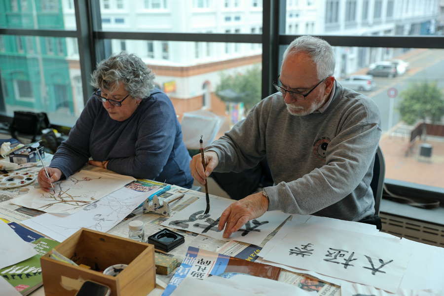 Since 2018, the center has held four calligraphy instruction sessions, which were taught by Huo Jingbo, a professional teacher who graduated from China's Central Academy of Fine Arts. [Photo by Zhang Jianyong/ provided to Chinaculture.org]