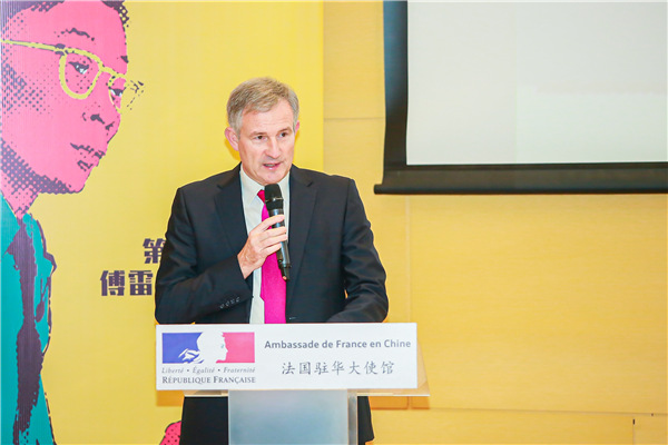 Laurent Bili, French ambassador to China, delivers a speech at the award ceremony of Prix Fu Lei 2020 in Beijing on Nov 21. [Photo provided to China Daily] |
