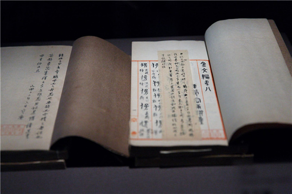 The manuscript of Rong's Investigation of Inscriptions on Ancient Bronzes at the show. [Photo by Jiang Dong/China Daily] |