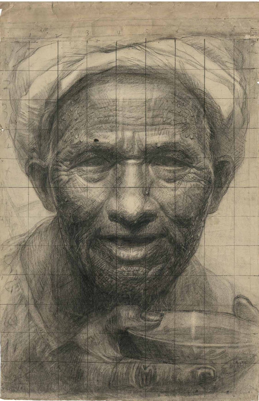A draft by Luo Zhongli for his iconic oil painting Father. [Photo provided to China Daily] |