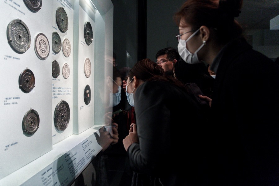 Mirrors of Eternity, an exhibition at the National Museum of China, offers a glimpse of the richness and diversity of bronze mirrors made in ancient China. [Photo by Jiang Dong/China Daily]