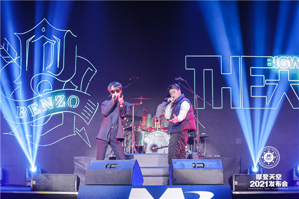 Rapper Li Daben (right) performs with Li Jian, leading vocalist and songwriter of rock band The Big Wave in Beijing on Nov 25. [Photo provided to China Daily] |