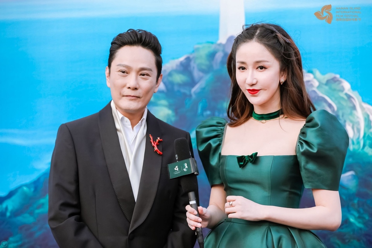 Renowned singer Jeff Chang (L) from China's Taiwan and Loura Lou, the Chinese actress noted for playing Hu Yifei in the hit sitcom television series, iPartment, arrive at the third Hainan Island International Film Festival in Sanya, South China's Hainan province, on Dec 5, 2020. [Photo provided to chinadaily.com.cn] |