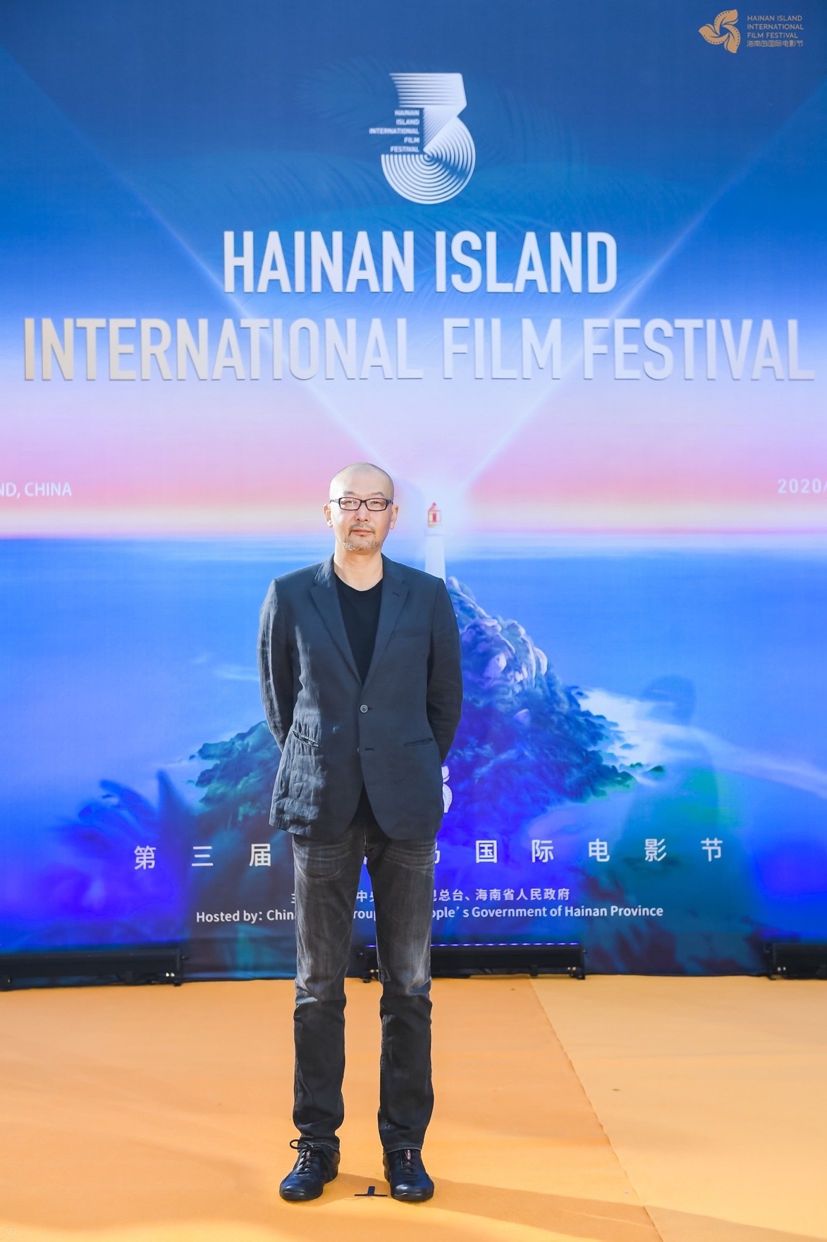 Chinese film director Guan Hu, whose works include The Eight Hundred, which depicts the defense of a warehouse by a small band of ill-equipped Chinese soldiers during the Japanese invasion of Shanghai in 1937, arrives at the third Hainan Island International Film Festival in Sanya, South China's Hainan province, on Dec 5, 2020. [Photo provided to chinadaily.com.cn] |