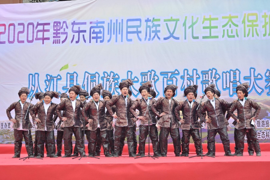 A team of Dong singers performs in Congjiang county, Guizhou province. [Photo by Wu Dejun/chinadaily.com.cn]