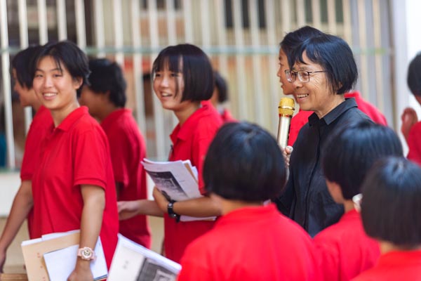 Zhang enjoys the moment with her students in September. [Photo/Xinhua] |