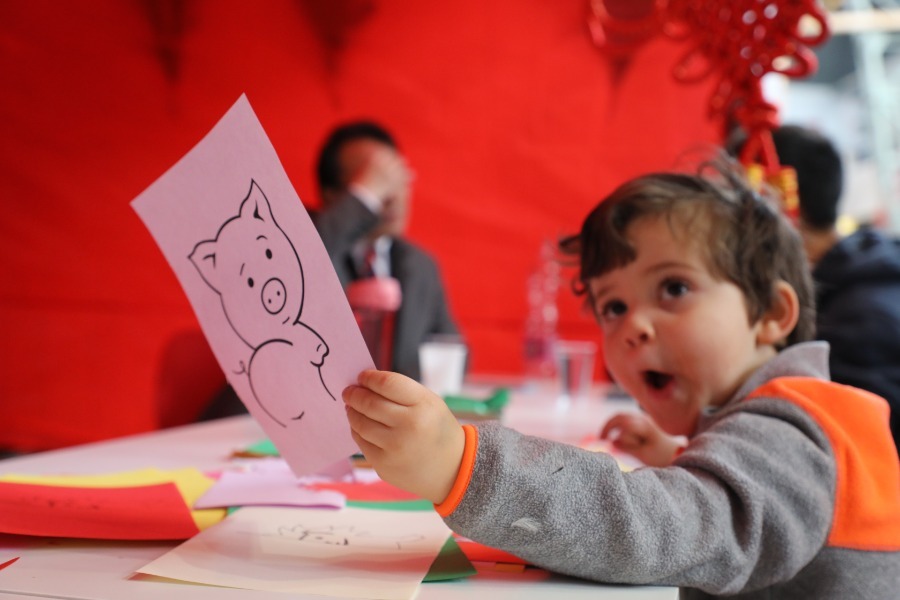 A boy holds a pig portrait he painted at a Spring Festival celebration event, in Budapest, Hungary, Jan 25, 2020. This photo won third prize in the Sharing China - Happy Chinese New Year photo contest 2020. [Photo by Liu Qinghui/Provided to chinadaily.com.cn]