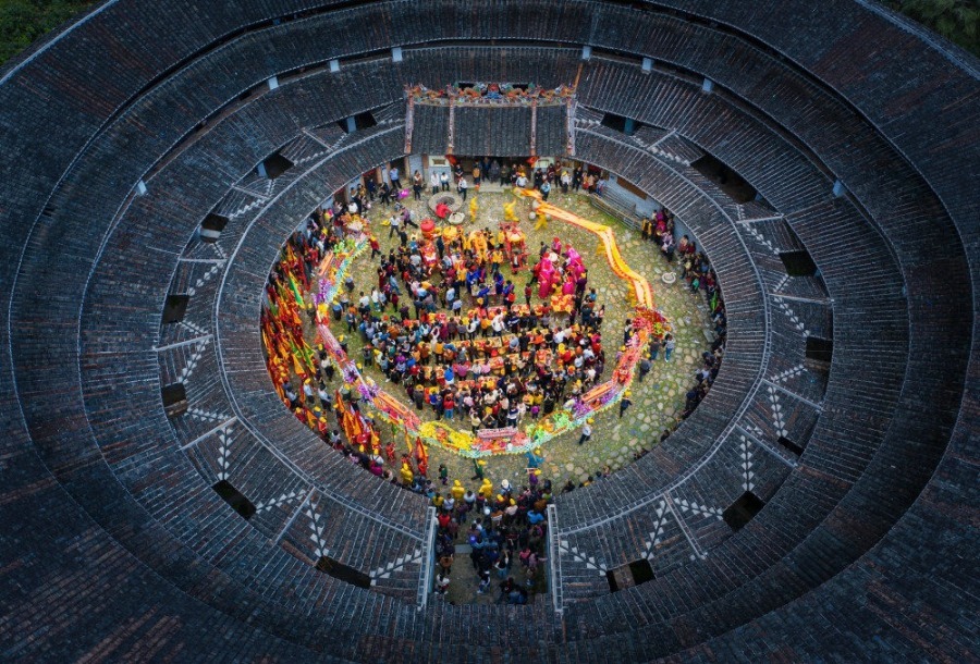 A blessing ceremony is held on Feb 15, 2020, to pray for the prosperity of the country and the well-being of the people, Zhangzhou city, Fujian province. This photo won second prize in the Sharing China - Happy Chinese New Year photo contest 2020. [Photo by Li Runnan /Provided to chinadaily.com.cn] |