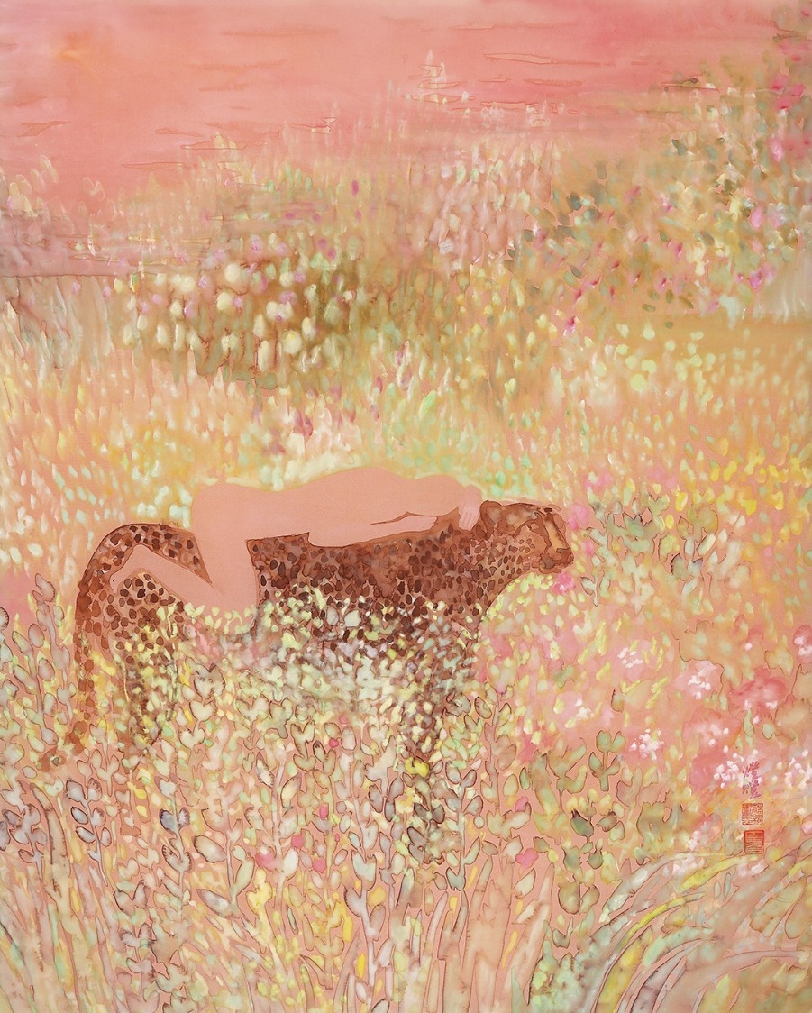 Yang Ying works with ink painting on silk and creates a fantasy world with a feminine touch. [Photo provided to China Daily]
