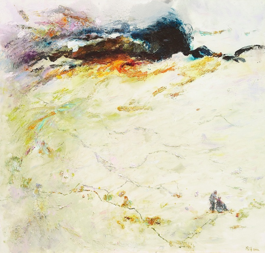 In her paintings, Ou Yang seeks to present a poetic touch with philosophical implications. [Photo provided to China Daily]