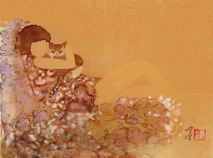 Yang Ying works with ink painting on silk and creates a fantasy world with a feminine touch. [Photo provided to China Daily]