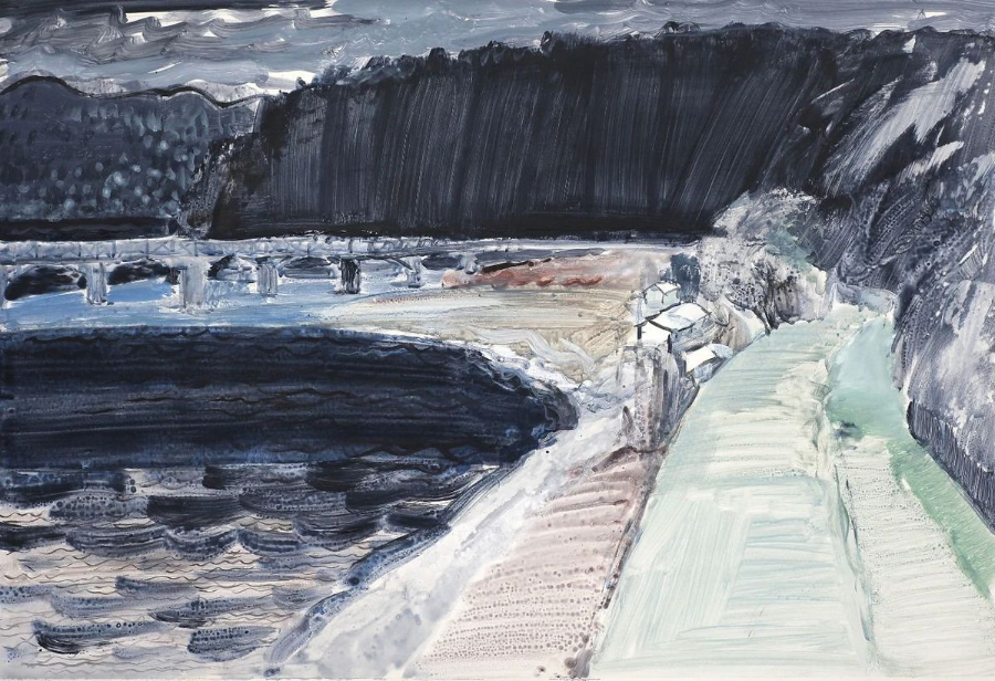 More than 80 watercolors and ink paintings by Song Yuelin are on show, who explores a highly expressionist style with two mediums of the East and West. [Photo provided to China Daily]