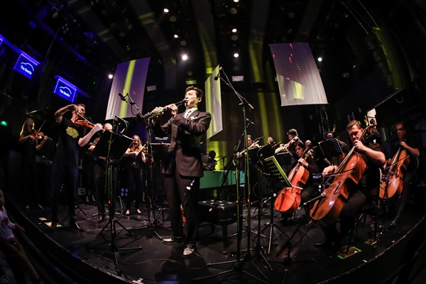 British violinist Daniel Hope (second from left) and Chinese clarinetist Wang Tao (center) perform with the Zurich Chamber Orchestra at a Yellow Lounge event in Beijing in September 2018.[Photo provided to China Daily] |