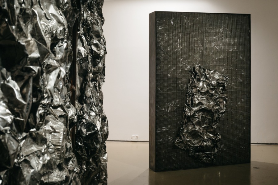 The Event of Iron, an ongoing exhibition at the Today Art Museum until Feb 28, shows mixed-media paintings and sculptures Wang Jiazeng created over the past two years. [Photo provided to China Daily]
