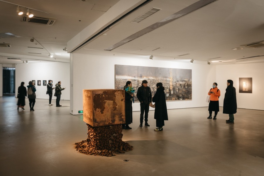 The Event of Iron, an ongoing exhibition at the Today Art Museum until Feb 28, shows mixed-media paintings and sculptures Wang Jiazeng created over the past two years. [Photo provided to China Daily]