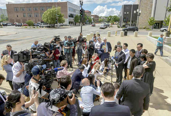 A scene outside the courthouse in Peoria - the case had attracted intense media attention in both US and China. [Photo provided to China Daily] |