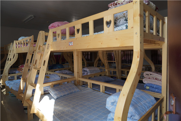 The girls' clean bunk beds. [Photo by Xu Lin/China Daily] |