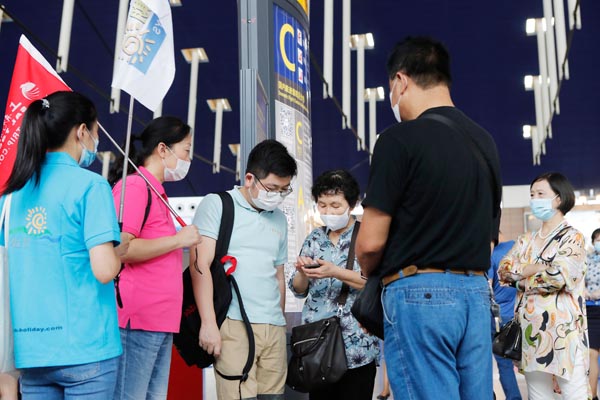 A group of tourists who bought China Eastern's "unlimited weekend flights" package departs from Shanghai Pudong International Airport to Guizhou's Zunyi on July 16. [Photo /China News Service] |