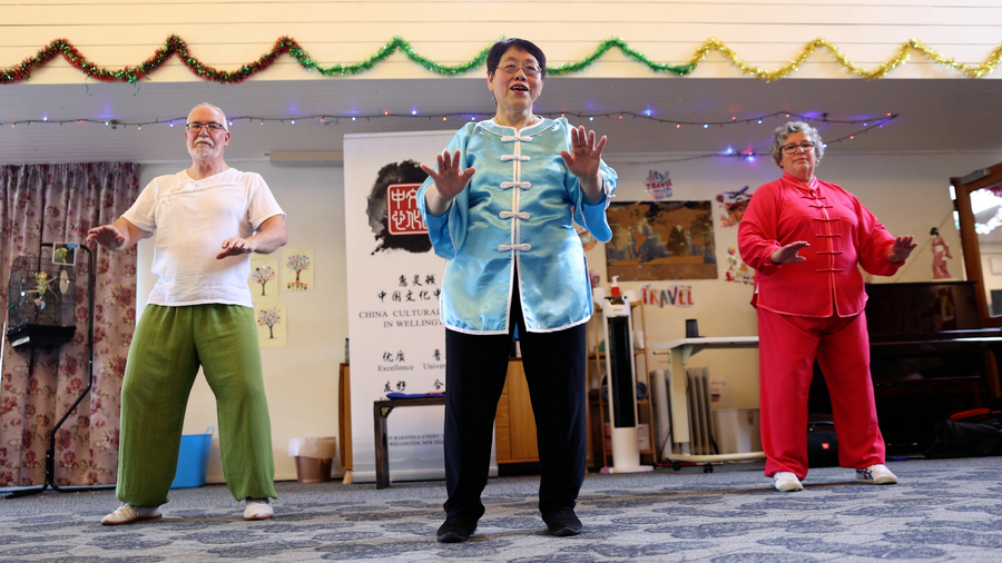 Taijiquan practitioners perform at a Chinese culture show held by the China Cultural Center in Wellington and Tai Chi Associaties Wellington for senior citizens at Longview Home, Wellington, New Zealand, on Dec 23, 2020. [Photo provided to Chinaculture.org]