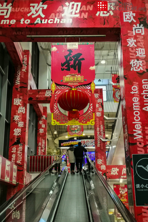 2020年1月4日拍攝于四川成都華陽(yáng)歐尚超市。進(jìn)入超市就感覺(jué)到了濃濃的年味兒。[攝影:余光俊]