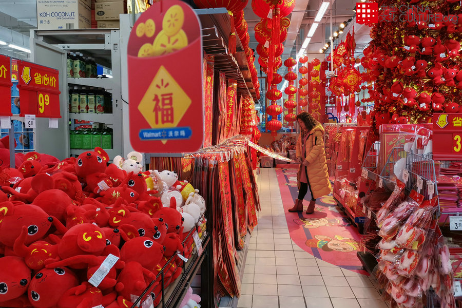 2020年1月4日拍攝于四川成都華陽(yáng)歐尚超市。進(jìn)入超市就感覺(jué)到了濃濃的年味兒。[攝影:余光俊]