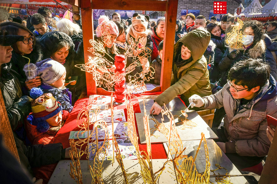 2018年12月20日拍攝于遼寧沈陽(yáng)皇寺廟會(huì)。廟會(huì)上老字號(hào)糖畫(huà)兒一展中國(guó)手藝風(fēng)采,深受廟會(huì)上孩子們的歡迎。[攝影:何軍]
