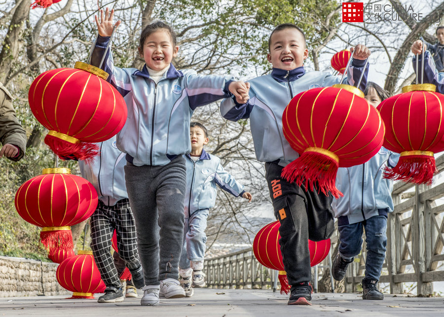 2020年1月8日拍攝于浙江省仙居縣綠道河埠段。浙江省臺州市仙居縣第一小學(xué)一年級(7)班小朋友在家長的陪同下來到仙居綠道,開展放寒假的第一堂社會實踐課“體驗?zāi)晡丁被顒印摹皰鞜艋\、提燈籠慢跑、頭頂燈籠競走、講過年掛燈籠習(xí)俗”等活動中感受年味,學(xué)習(xí)和弘揚(yáng)傳統(tǒng)佳節(jié)的優(yōu)秀文化。[攝影:陳月明]