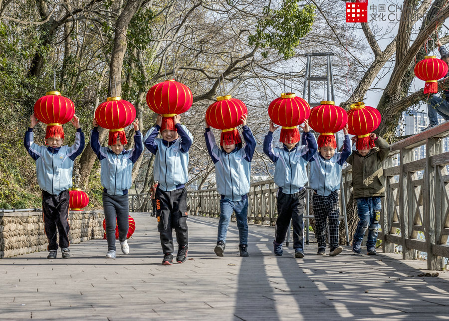 2020年1月8日拍攝于浙江省仙居縣綠道河埠段。浙江省臺(tái)州市仙居縣第一小學(xué)一年級(jí)(7)班小朋友在家長(zhǎng)的陪同下來(lái)到仙居綠道,開(kāi)展放寒假的第一堂社會(huì)實(shí)踐課“體驗(yàn)?zāi)晡丁被顒?dòng)。從“掛燈籠、提燈籠慢跑、頭頂燈籠競(jìng)走、講過(guò)年掛燈籠習(xí)俗”等活動(dòng)中感受年味,學(xué)習(xí)和弘揚(yáng)傳統(tǒng)佳節(jié)的優(yōu)秀文化。[攝影:陳月明]