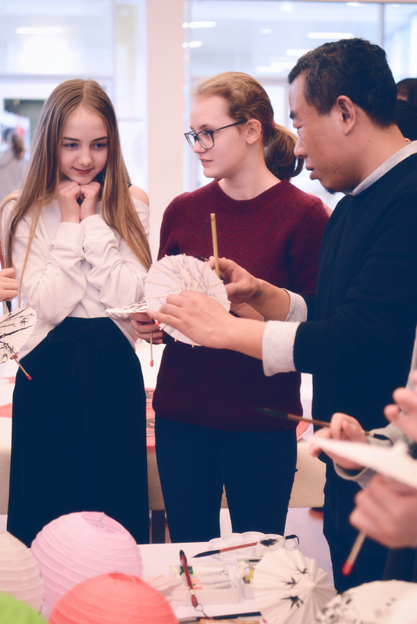 2020年1月17日拍攝于盧森堡雅典娜中學(xué)。由盧森堡中國文化中心主辦的歡樂春節(jié)走進(jìn)校園活動在盧森堡雅典娜中學(xué)舉行。雅典娜中學(xué)是盧森堡唯一開設(shè)中文課的學(xué)校。同學(xué)們饒有興趣地學(xué)習(xí)了解并動手創(chuàng)作自己的作品。[攝影:周倜]