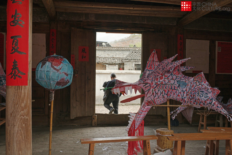 2018年2月28日拍攝于福建連城縣宣和鄉(xiāng)培田古村。福建連城縣宣和鄉(xiāng)培田古村是中國名村之一,每年的春節(jié)村里活動頻繁熱鬧。照片從正月里扎龍開始一直到晚上的游龍。[攝影:阮煜]