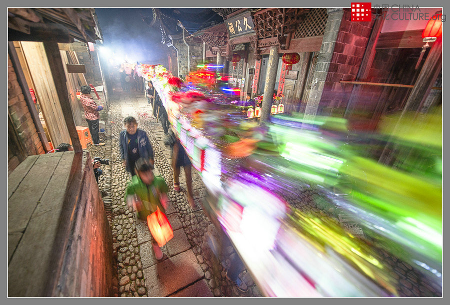 2018年2月28日拍攝于福建連城縣宣和鄉(xiāng)培田古村。福建連城縣宣和鄉(xiāng)培田古村是中國(guó)名村之一,每年的春節(jié)村里活動(dòng)頻繁熱鬧。照片從正月里扎龍開(kāi)始一直到晚上的游龍。[攝影:阮煜]