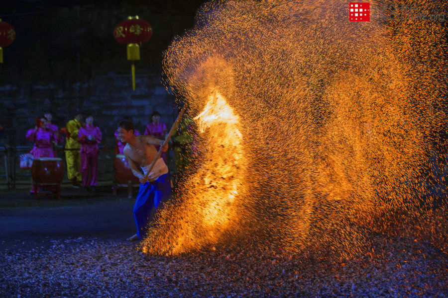 2020年1月17日拍攝于浙江金華磐安雙峰鄉(xiāng)大皿村?!盁捇稹薄笔墙鹑A磐安千年絕活,被列入浙江省第一批非遺項目。具有神秘地域文化色彩,煉火通常在夜晚進行,參加活動者皆提前沐浴凈身,休息養(yǎng)神。煉火有乞愿來年興旺發(fā)達的意喻。[攝影:董小飛]