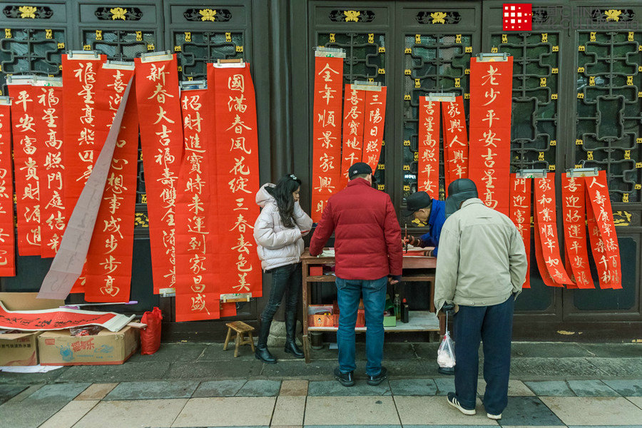 2020年1月17日拍攝于湖南省瀏陽(yáng)市。譚嗣同故居前寫(xiě)春聯(lián)的老人,他每年春節(jié)前十幾天內(nèi)都會(huì)在這兒賣(mài)春聯(lián),已經(jīng)20多年了。[攝影:賀再亮]