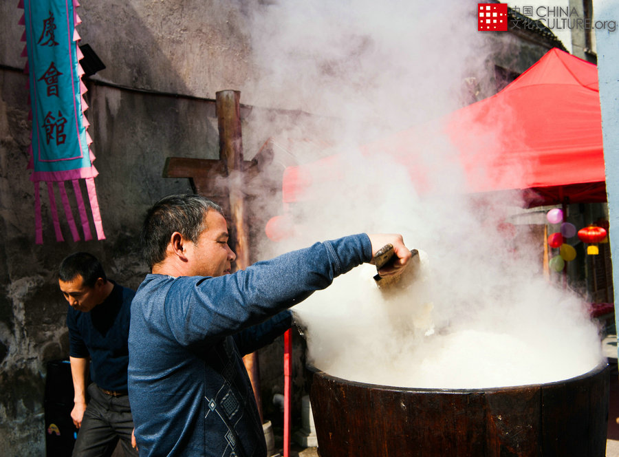 2020年1月20日拍攝于湖南省懷化市洪江古商城。打糍粑是中國節(jié)日風(fēng)俗。流行于我國南方地區(qū),又以湘西地區(qū)的懷化、自治州等地最為盛行。尤其是在過年等重要節(jié)日的時(shí)候,每家每戶必須要打糍粑,作為節(jié)日食品供客人品嘗。每年一到臘月,各種濃濃的年味便會(huì)撲面而來:殺年豬、做糯米酒、打糍粑……每家每戶都熱火朝天地忙碌著,籌備著,歡笑著,到處都洋溢著節(jié)日濃濃的氣氛。[攝影:田文國]