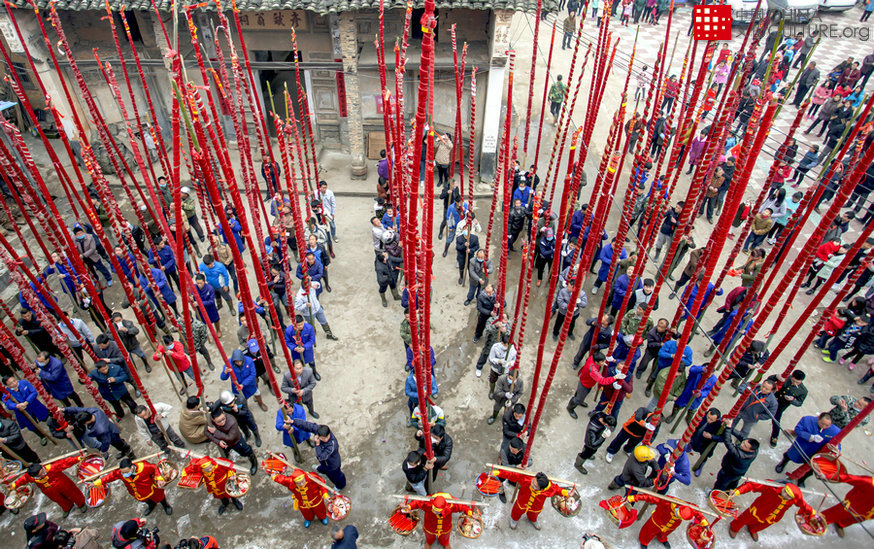 “喜慶添丁爆”拍攝于2017年春節(jié)期間。是客家人春節(jié)期間的一種民俗活動,主要在春節(jié)期間喜慶家族各戶送竹槁和爆竹祝福各戶添丁。[攝影:曾繁華]