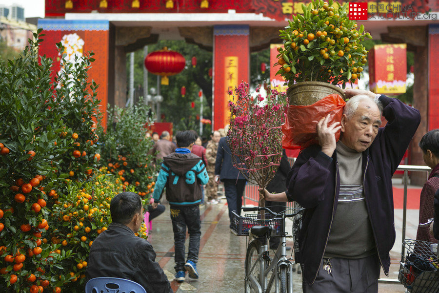 2015年2月10日至2017年1月25日組圖拍攝于廣東省廣州市北京路、廣州市荔灣區(qū)西關(guān)、佛山市石灣公園等地。冬季的嶺南地區(qū),氣候溫潤(rùn),百花盛開,當(dāng)?shù)赜匈?gòu)買鮮花過(guò)年的習(xí)俗。每到春節(jié)前夕,各城市區(qū)塊均設(shè)置有面積大小不一的花市,供市民趕集采購(gòu)鮮花,裝扮室內(nèi)外環(huán)境。最受大眾歡迎的是桃花樹、蝴蝶蘭和金桔盆栽,據(jù)說(shuō)喻意宏圖大展、愛情甜蜜和富貴榮華。老百姓對(duì)美好生活的向往和積極的生活態(tài)度可見一斑。[攝影:王良才]