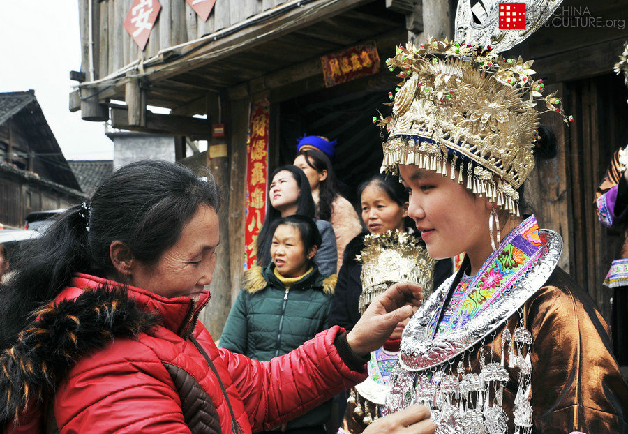 2015年3月2日拍攝于廣西融水苗族自治縣。正月元宵節(jié)是苗家的蘆笙盛會。在融水苗族自治縣的坡地上,豎起了幾根蘆笙柱,歡樂的男女青年一群群圍著蘆笙柱轉(zhuǎn),男的拿著蘆笙,女的拿著花傘,每柱周圍都有一支蘆笙隊在歡奏,這就是苗族坡會。[攝影:陳浦生]