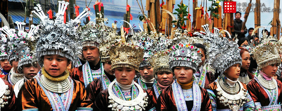 2015年3月2日拍攝于廣西融水苗族自治縣。正月元宵節(jié)是苗家的蘆笙盛會(huì)。在融水苗族自治縣的坡地上,豎起了幾根蘆笙柱,歡樂的男女青年一群群圍著蘆笙柱轉(zhuǎn),男的拿著蘆笙,女的拿著花傘,每柱周圍都有一支蘆笙隊(duì)在歡奏,這就是苗族坡會(huì)。[攝影:陳浦生]