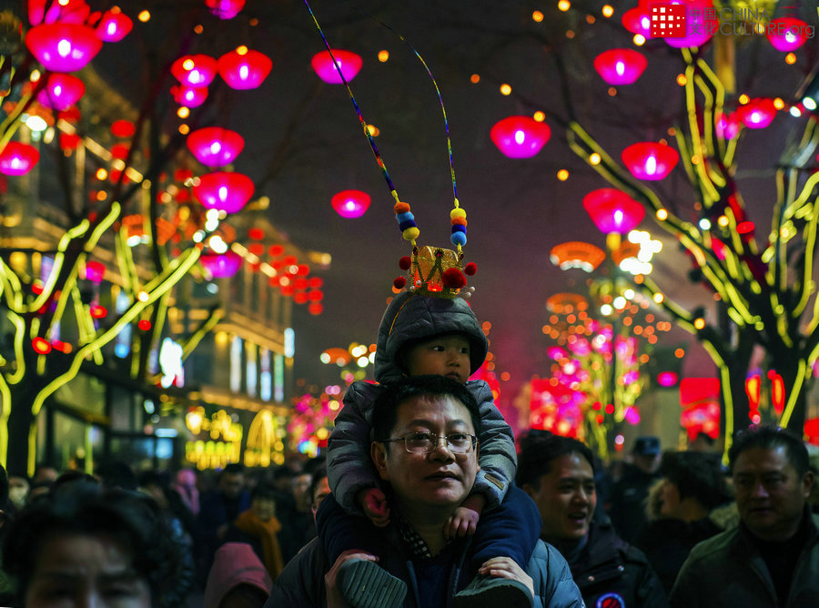 2019年2于19日拍攝于陜西西安市大唐不夜城。春節(jié)期間,西安市大唐不夜城的花燈吸引著市民前來觀賞。[攝影:馮長榮]