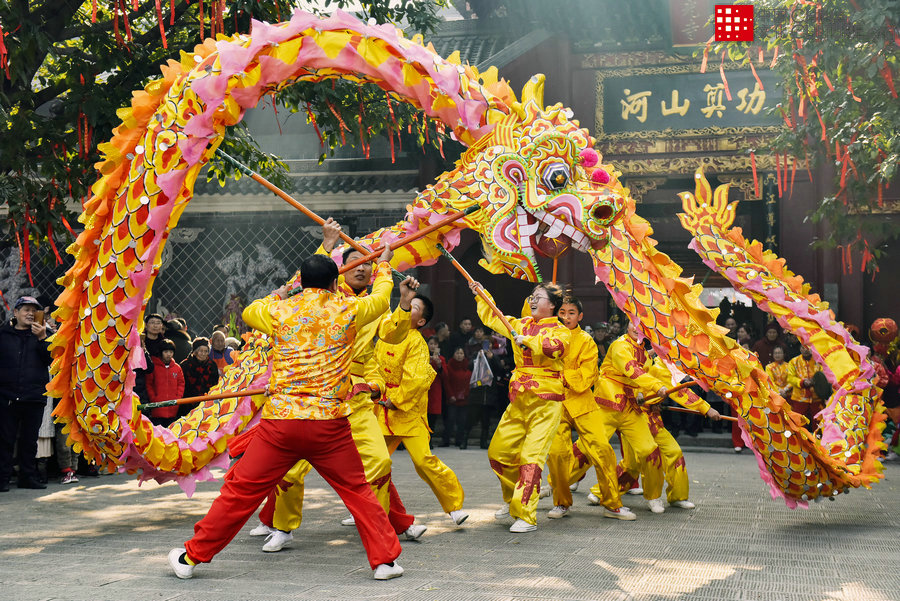 2019年2月5日拍攝于中國(guó)四川省宜賓市李莊古鎮(zhèn)。李莊古鎮(zhèn)每年都在老街寺廟門口舉行舞龍、舞獅迎新年活動(dòng),每一個(gè)舞龍、舞獅團(tuán)隊(duì)盡顯自己最佳創(chuàng)意和力量唯美,給整個(gè)古鎮(zhèn)的春節(jié)氣氛增添厚重的傳統(tǒng)民間技藝色彩。[攝影:雷宇]