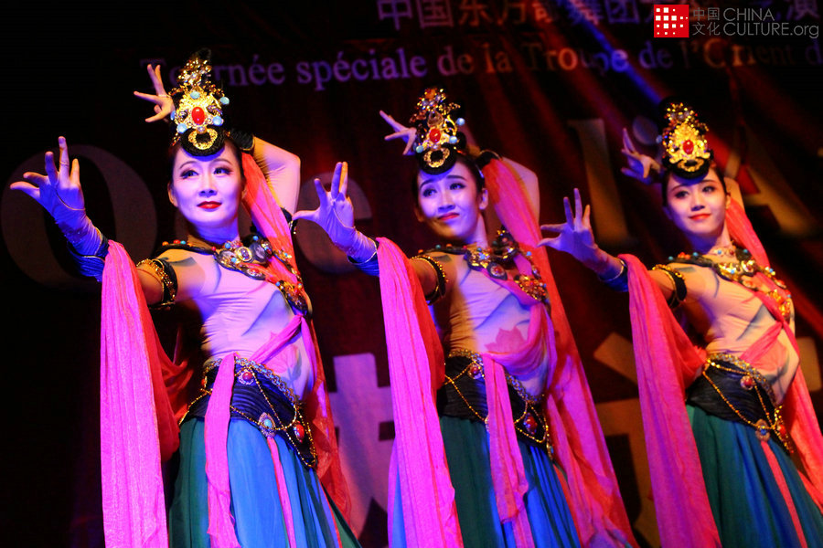 Photo taken at the Halls of Arts and Culture in Cotonou, Benin on Jan 26, 2019. The dance Jasmine Flower was performed during the 10th edition of Chinese New Year Festival in Benin. [Photo by Degan Gabin]