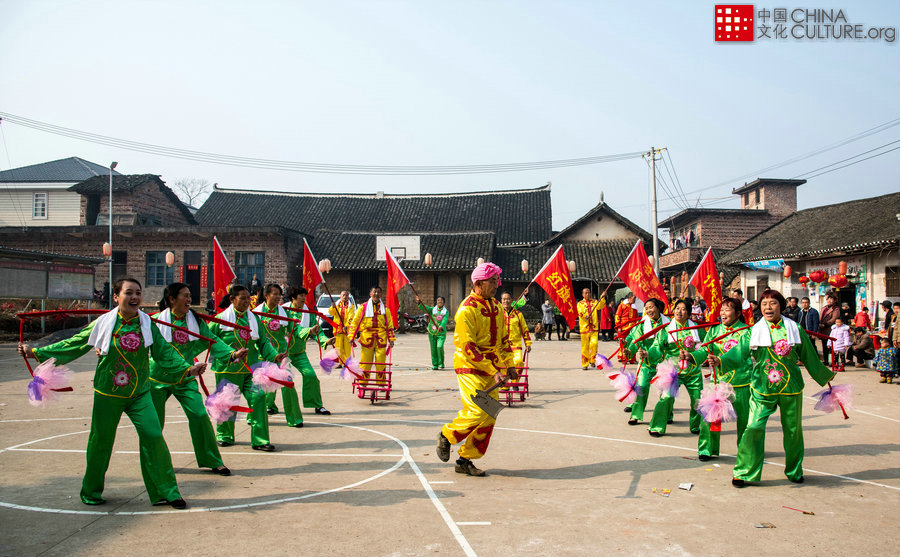 2020年1月25日拍攝于湖南省祁陽縣潘市鎮(zhèn)側(cè)樹坪村楊家。側(cè)樹坪楊家是一座有300多年的歷史文化名村,這里有豐富的文化底蘊,每年大年初一楊家都會舉行傳統(tǒng)的文化節(jié)目慶祝新年的到來。[攝影:鄧宏鈺]